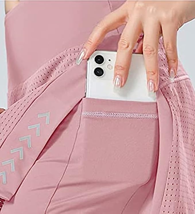 Pinellia Women-Running-Shorts 2-in-1 High-Waisted Workout-Shorts - Gym Athletic Slit Shorts with Pocket