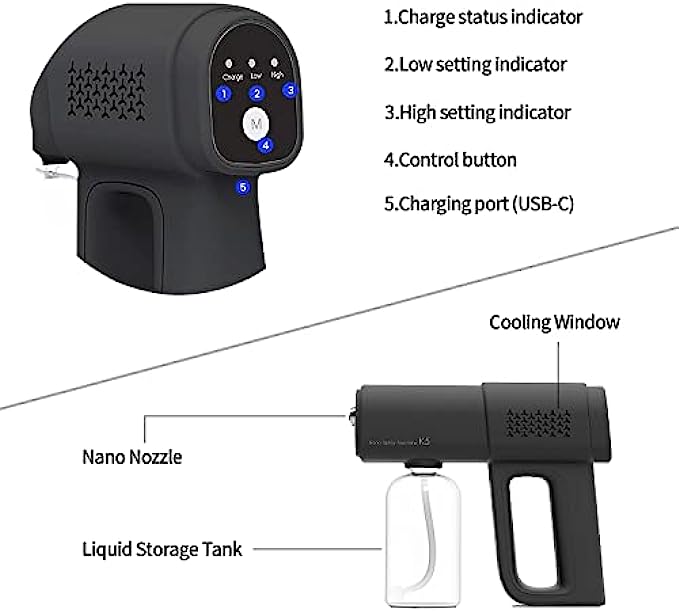 【Handheld Wireless Fogger】You can easily clean full rooms in under 5 minutes. More effective than manual hand wiping, pump spraying or mopping. The spraying range is about 2-4 feet. Nano sprayer gun can be sprayed directly on the surface of the human body, fabrics, home appliances and other objects.