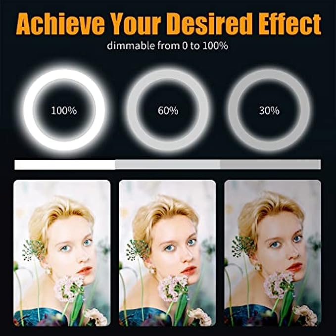• 【Dimmable Ring Light】 3 colors lights modes: white/ warm white / warm light, 5 inch LED ring LED light 2900-6500K, and 9 adjustable brightness for each mode. Perfect dimmable brightness and modes meet all your needs. It's the ideal ring light for streaming,Tiktok 、photography lighting, smartphone selfie, YouTube video recording and so on.