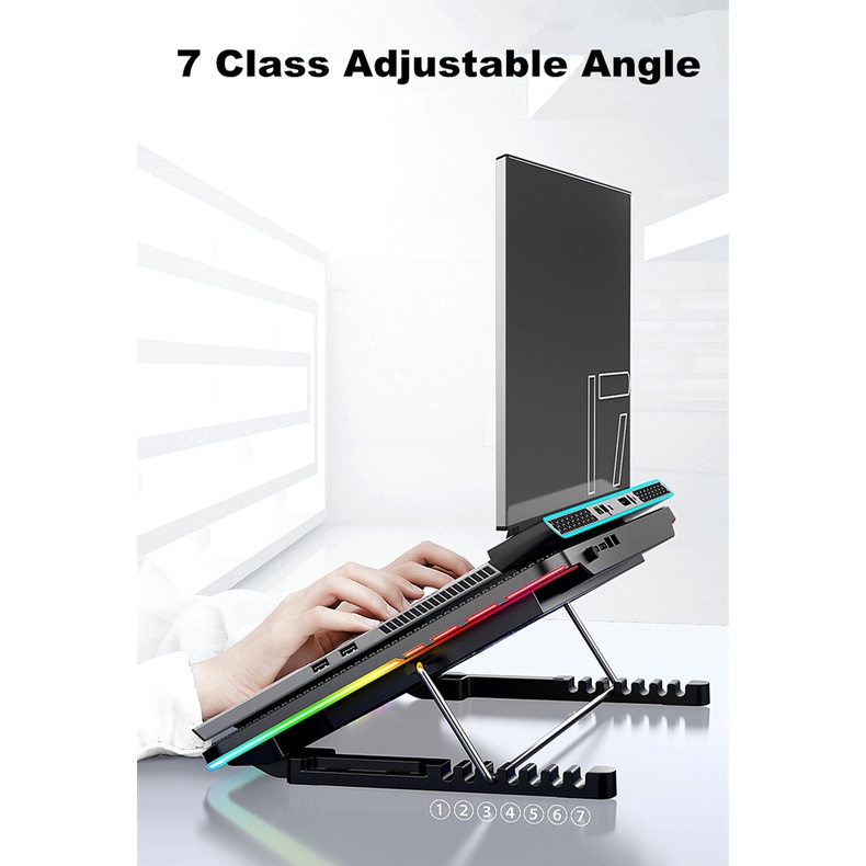 SG Local 6 Fans RGB Laptop Cooling Pad Gaming Laptop Cool Pad with 7 Level Adjustable Height Stand for 12-17 Inch Laptop