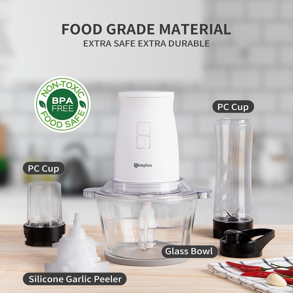 Simplus Meat Grinder 1.8L Glass Bowl Food Chopper Processor Mixer Mincer 4 Blades Stainless steel