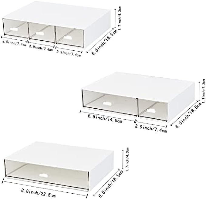 PERFECT SIZE - 8.8*6.5*1.7inch/22.5*16.5*4.3cm, elegant look, it fits easily in the desk. clear drawers design easy to see through and keep everything in order and easy to access