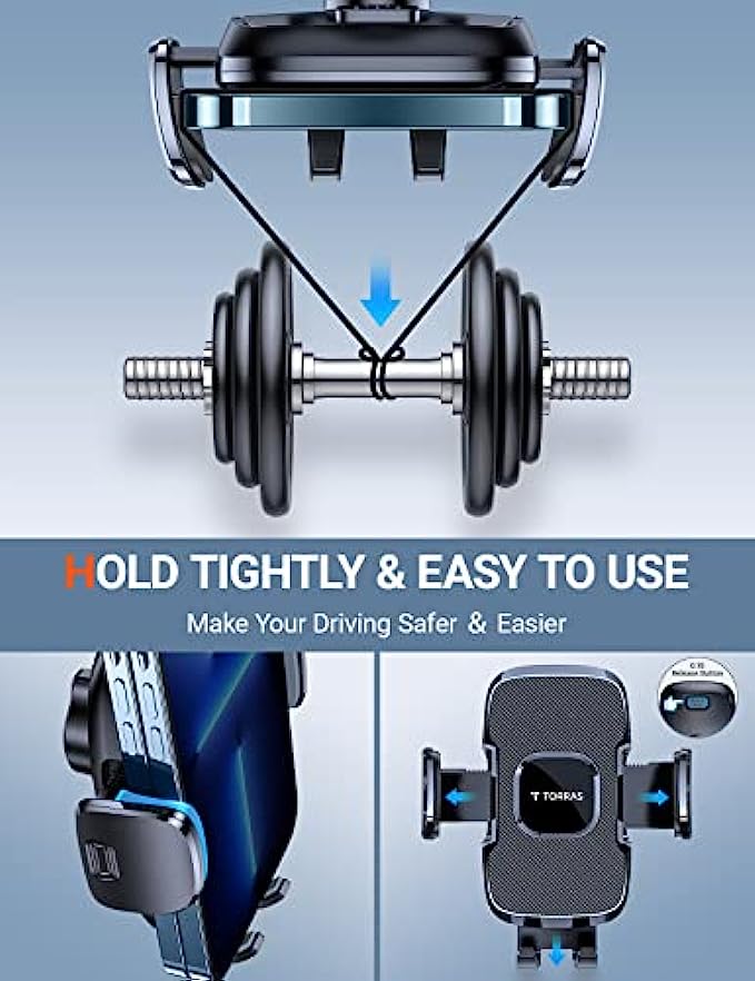 ▶[MILITARY GRADE STURDINESS TEST]: The 2022 enhanced TORRAS cell phone holder for car passed the military-grade sturdiness test! Absolutely sturdier 20 x than normal ones! The suction cup can withstand the temperature from -20℃(-4°F) to 95℃/(203°F), also be reusable! You can stick it on your car dash or windshield. Also, you can get a sticky pad to protect your car dash. Completely friendly, hands-free and views-adjustable! ▶[EASY&REAL HANDS-FREE]: Release easily with one button, clamp fast with one hand! ▶The car phone holder mount is suitable for all kinds of mobile phones with brand thick cases, Battery cases, Ring cases and it is exceptionally sturdy to hold your phone tightly. Like iPhone SE /11/ 11 Pro/11 Pro max /x/ xs max/xr/8 plus/8/7/6s plus, Samsung galaxy s21 /s20/s20+/s20 ultra 5G/note 20/10 plus/10/9 plus/9/s10/s9/a10e, Google Pixel 3a/4 XL, LG v20, One Plus and more. ▶[4 IN 1 ULTIMATE CAR MOUNT]: Are you not sure which installation method is better for your car? No worries! The 4 in1 phone mount for car can be flexible placement! Dashboard & Windshield & Air Vent & Home, all places work perfectly! Also, with low temperatures in winter and heat in summer, you can choose to avoid the issue caused by environmental influences. ▶[2022 ENHANCED VENT CLIP]: You can screw the nut to fix the clamp freely, the tighter you screw, the sturdier it will be! Its two small arms are just enough to press against the upper and lower vent blades to form a stable triangular structure and lighten the load on the middle one, with no damage to your car. This clip more than 10X sturdier than normal ones. It fits perfectly for your car no matter what the thicker blades vents or vertical ones. ▶[WHAT YOU GET]: TORRAS ensures you with an 36-month pleasant experience and top customer service. Please feel free to let us know if have any questions about this car phone mount. With the car holder for cell phone, you can get a package including 1 enhanced suction cup, 1 sticky pad, 1 strong air vent clip, and 1 user manual. Note: The sticky pad just can be used once, please think twice to stick it.