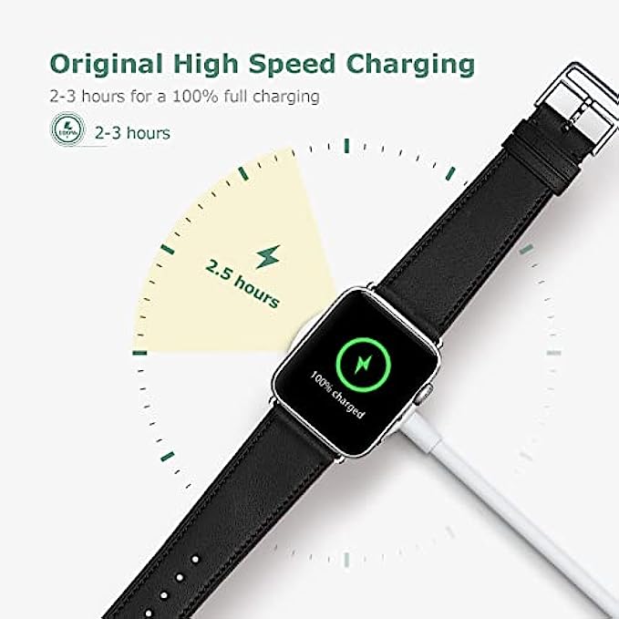 • 【Fast Efficient Charger】This watch charger offers original fast charging speed for your watch series 1/2/3 in 2 hours and 3 hours for series 4/5/6/7. Note: Please take off the watch case and use a 5V/1A adapter or original adapter for better charging.