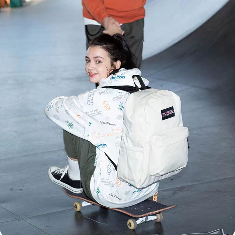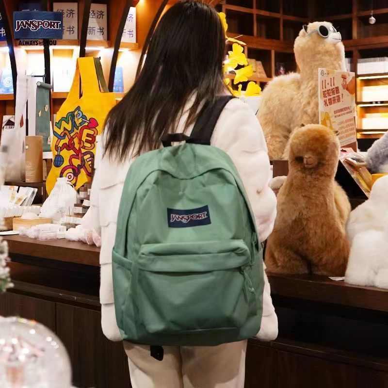 Colour:same as picture Material Quality:sturdy canvas material seems to be the authentic jansport bag very spacious and has a laptop sleeve, as well as a small inner pocket on the outside pocket. no pockets in the main compartment, and one water bottle slot straps are comfortable, zips are smooth as well