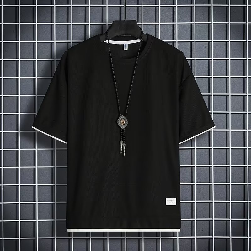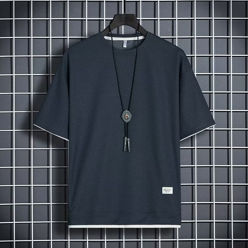 Basic Plain Waffle T Shirt Men Summer Thin Breathable Short Sleeve Tshirts Simple Casual Loose Round Neck Top