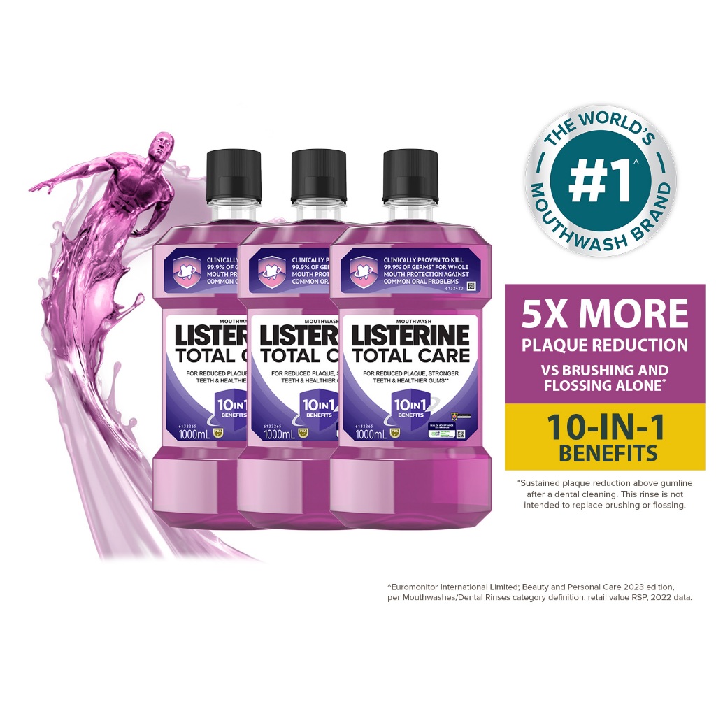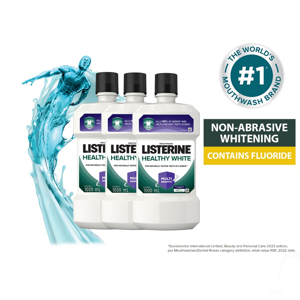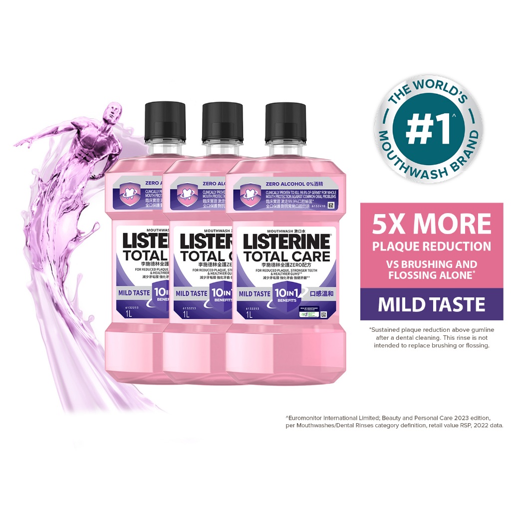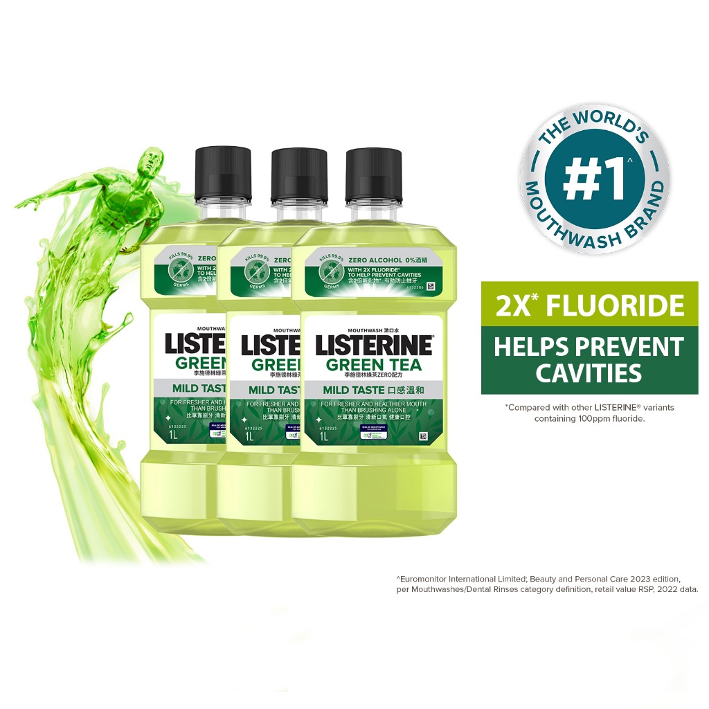 [Bundle of 3] Listerine 1L Mouthwash Value Pack (Cool Mint/Cool Mint Zero/Total Care Zero/Original/Green Tea/Healthy Whi