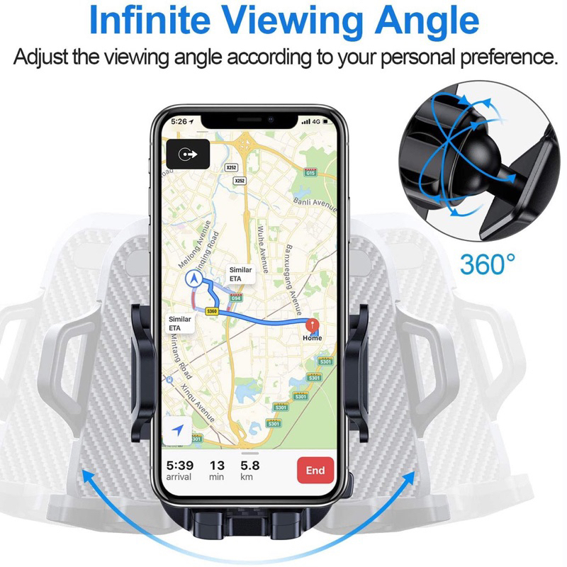 Car Phone Holder - Mobile Cell Phone Hands Free 360 Rotate Universal Retractable Windshield Dashboard Suction Mount