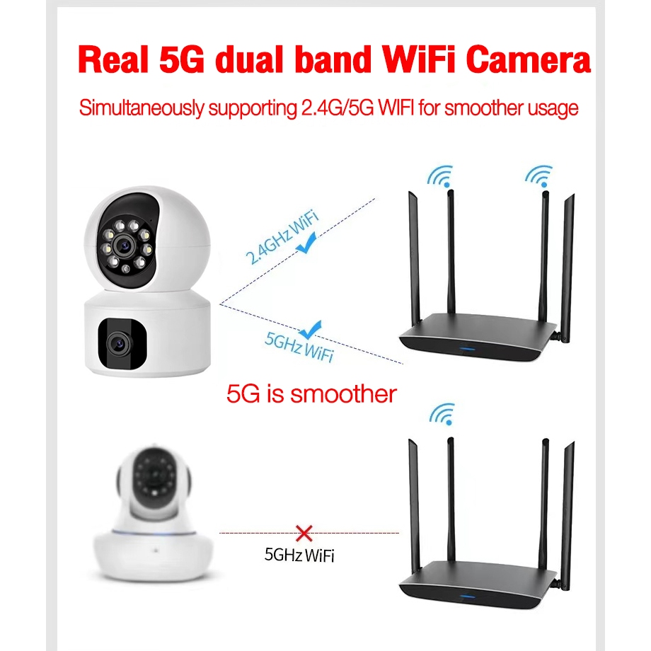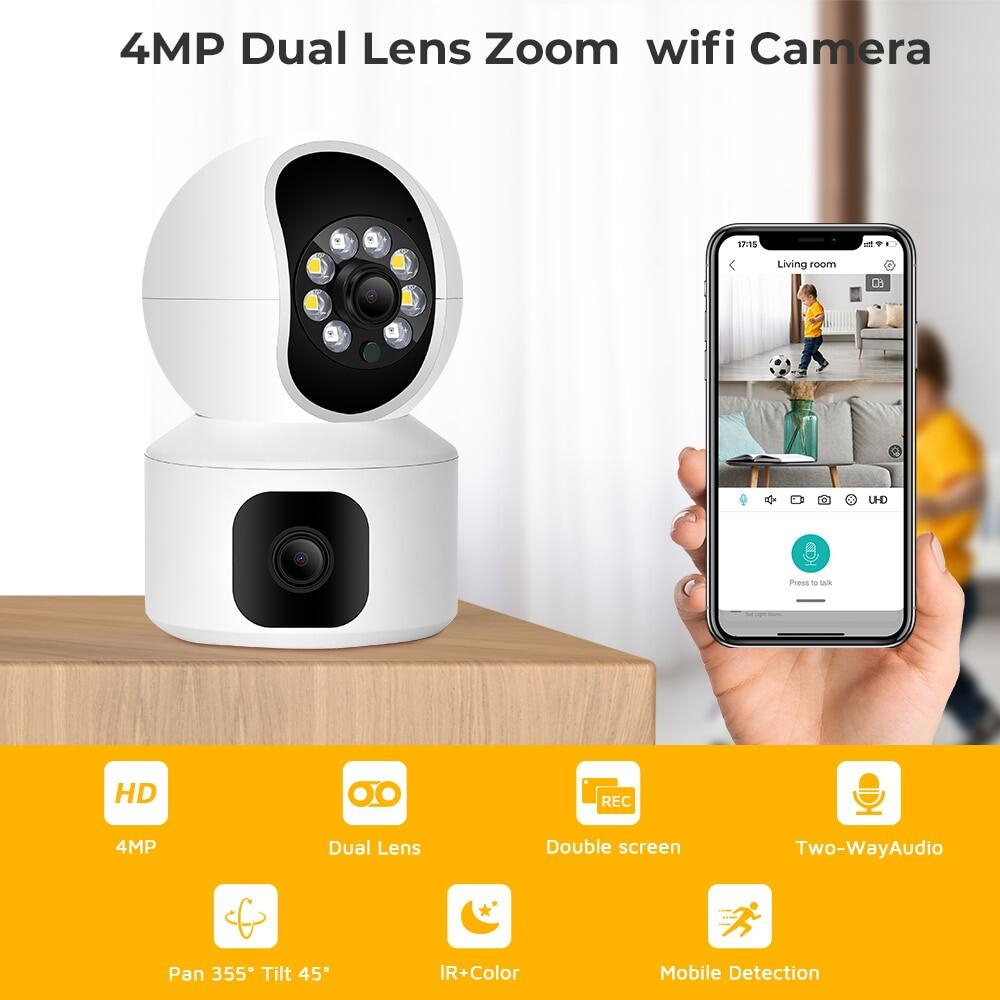 Dual Lens 5G WiFi Camera Dual Screen Baby Monitor Auto Tracking Ai Human Detection Indoor Home CCTV Camera Connect
