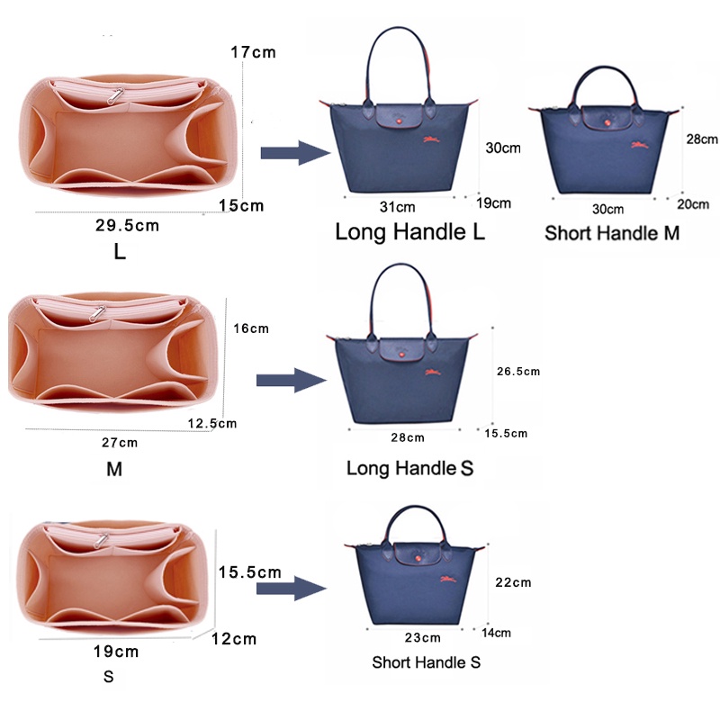 Fits perfectly in my Longchamp M size bag, good quality, really gives the bag good structure and good compartments!!