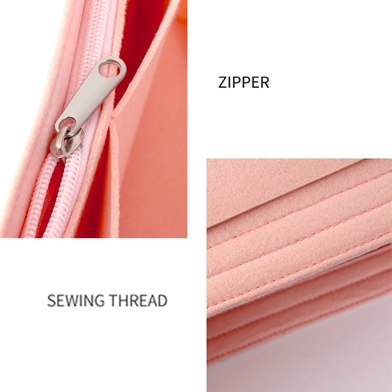 Material Quality:felt Colour:beige Received in good order. Very good organiser for big handbag. Give my bag a shape that’s looking nice. Preparing big crossbody bag for Norway ?? trip next week. Thank you seller and logistics team.