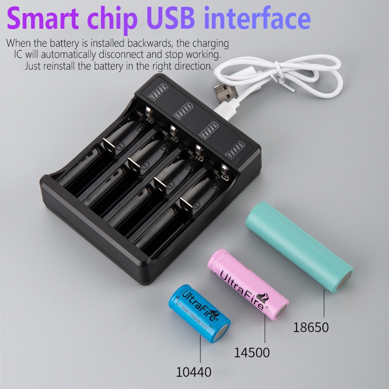 Fast Charger with Type C cable 4.2V Lithium Battery 4 Slot Strong Light Flashlight Intelligent Charge for 14500 26650 18650