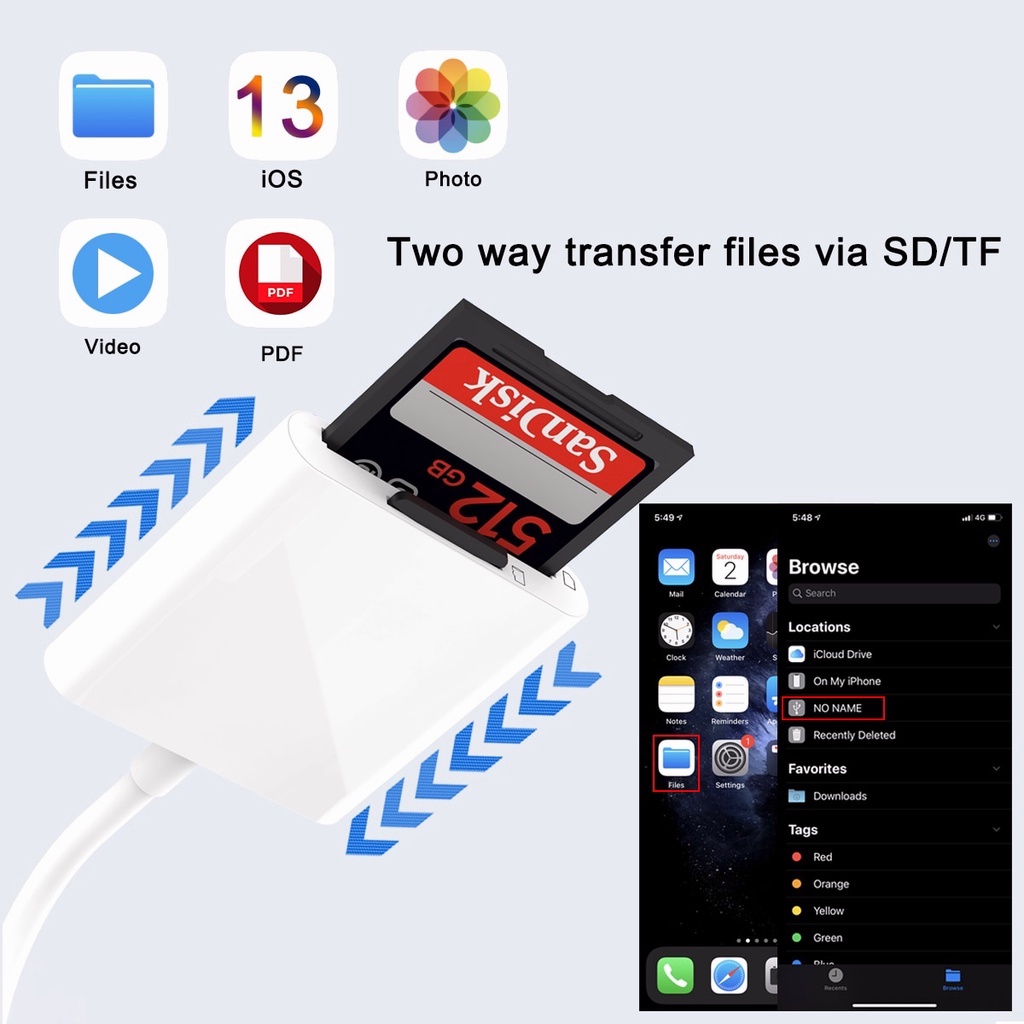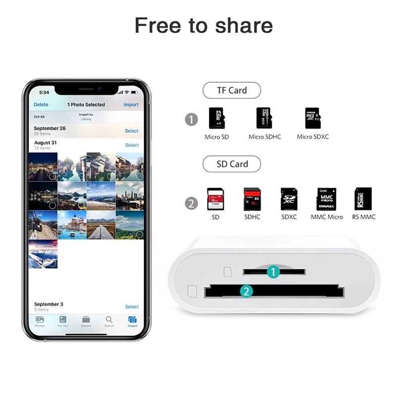 Fonken 2 In 1 Card Reader Type C for i-Phone 15 Series SD TF Card Reader Adapter U Disk Converter Light-ning Card Reader for i-Phone 14 13 12 11