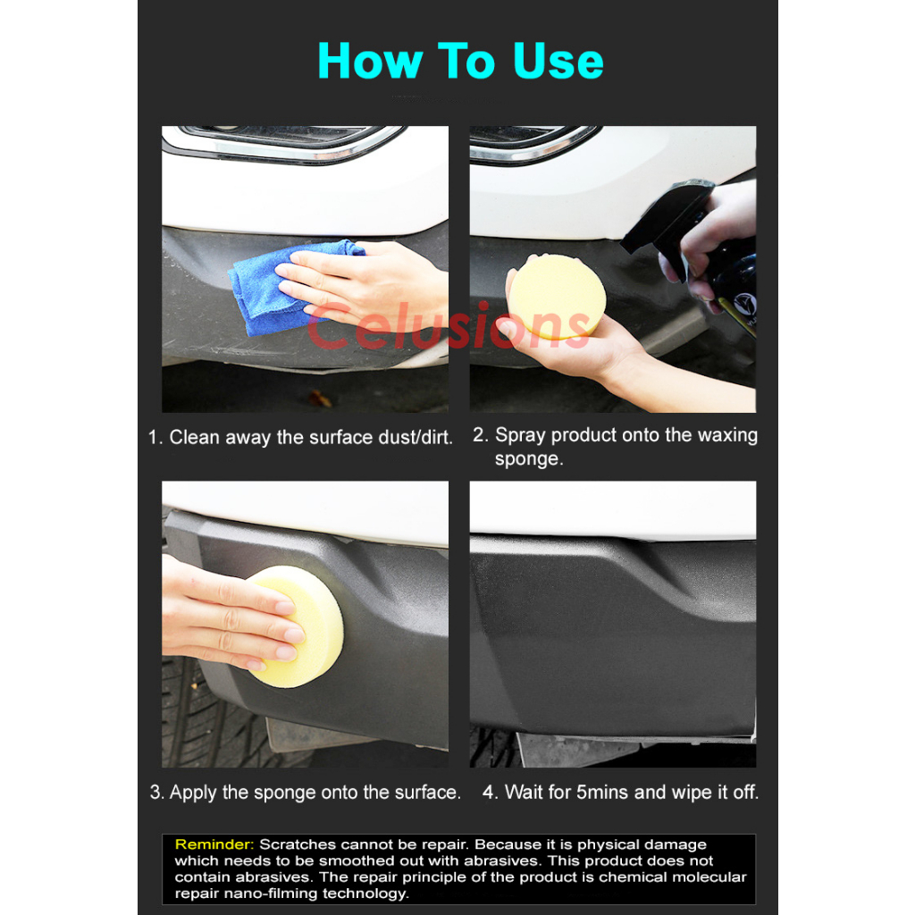 【FREE Sponge】⭐Plastic Restorer Spray⭐ Surface Coating Agent Car Home Motorcycle Use Leather Rubber Black Paint Restore