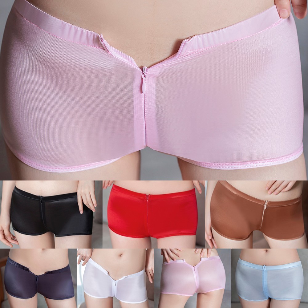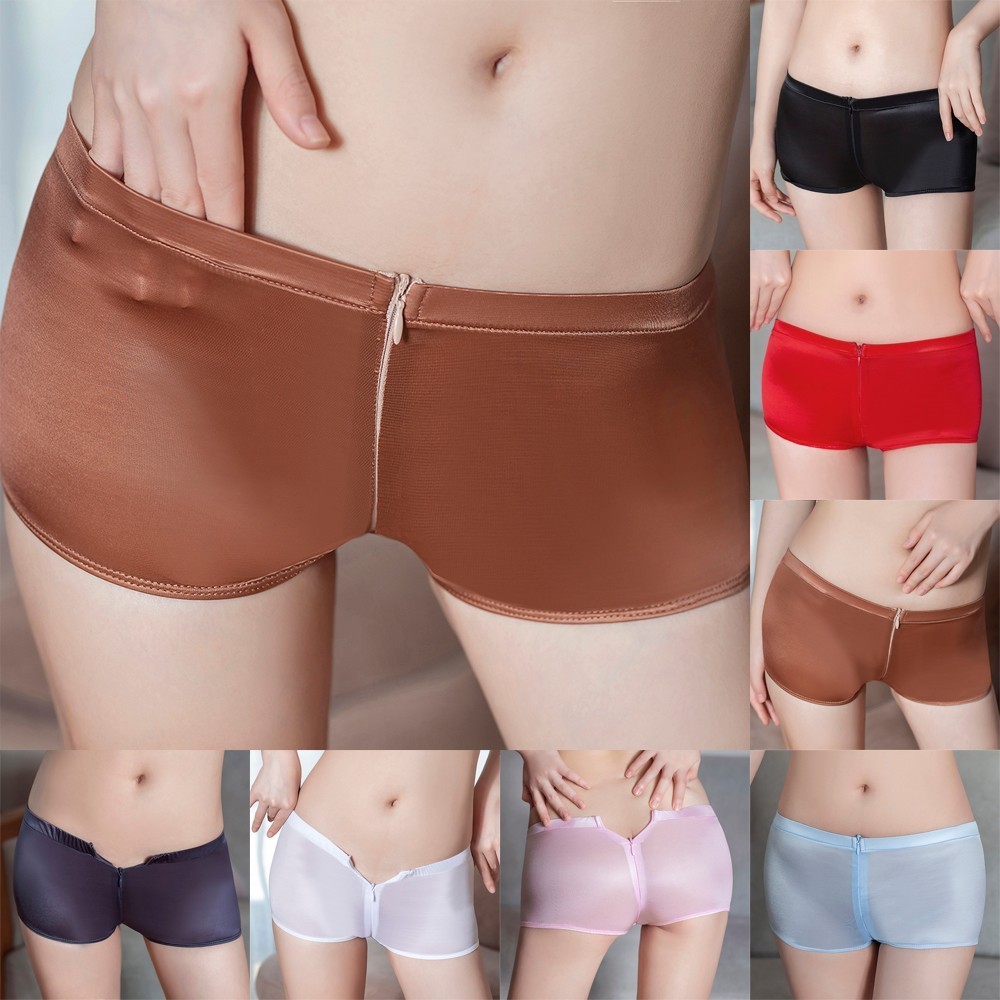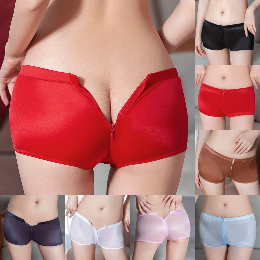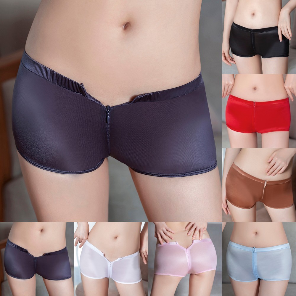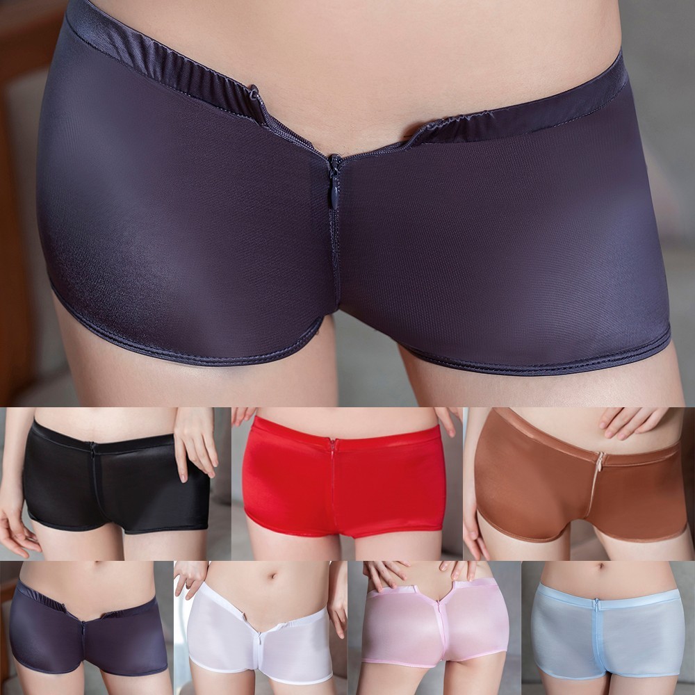 【HEPA】 Women Sexy Sheer Lingerie Briefs Open Crotch Zipper Boyshorts Underwear Panties