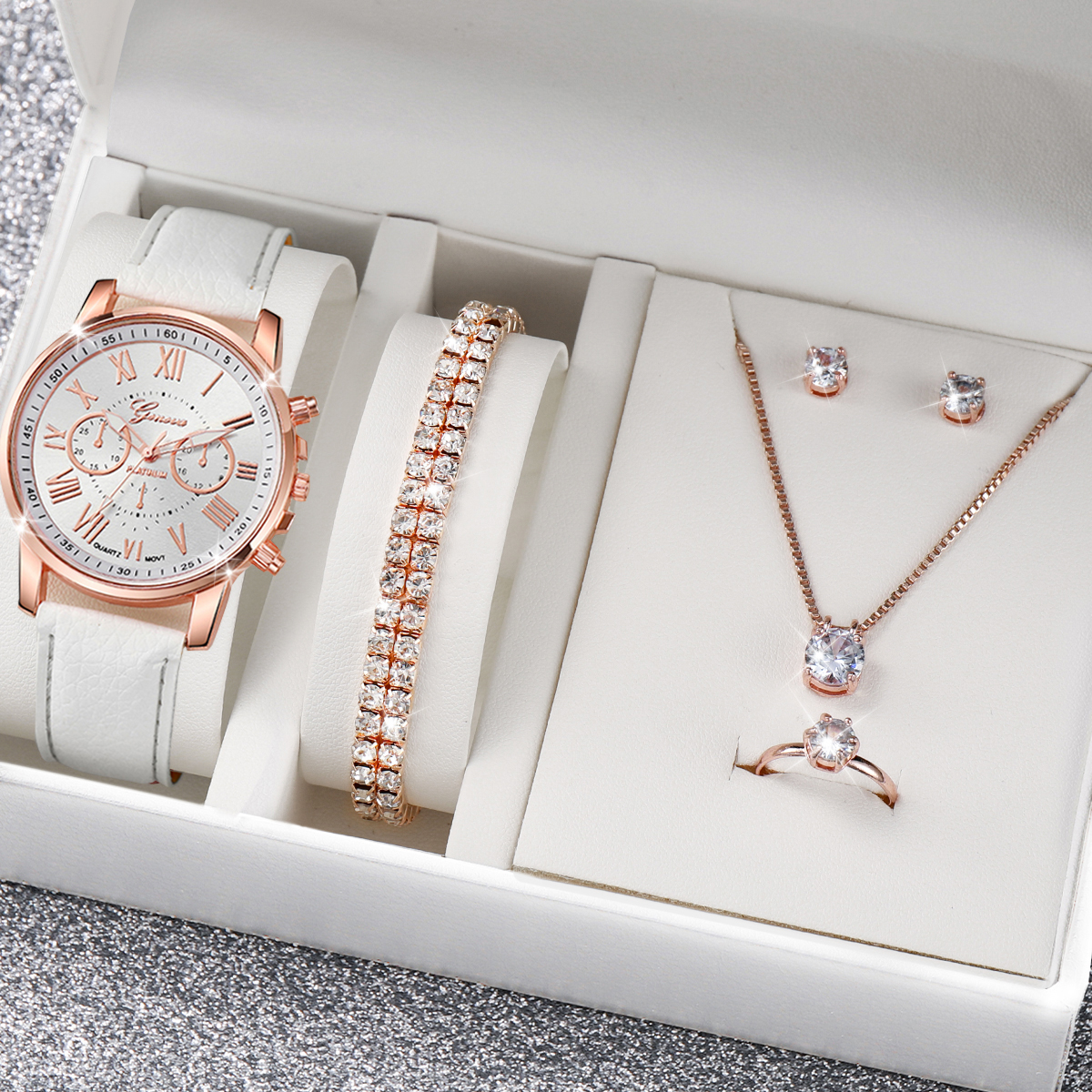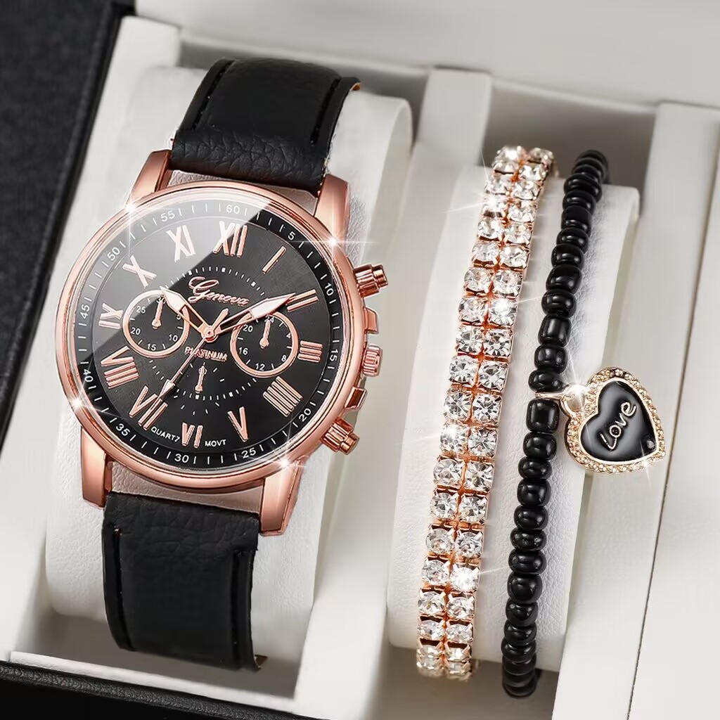 Ladies Belt Geneva Quartz Watch Jewelry Set