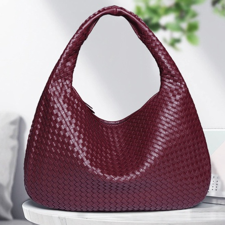 Large Women PU Leather Woven Handbag Fully Hand-Woven Underarm bag