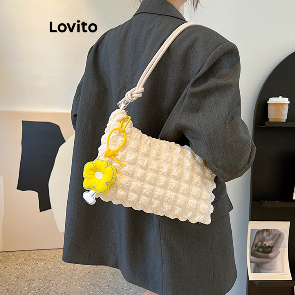 Material Quality:Good Colour:Cream white and blue Received with satisfaction. I love this Lovito shoulder bag. I thought small but so cute and very spacious inside. Super love the Lovito .. Thank you seller.