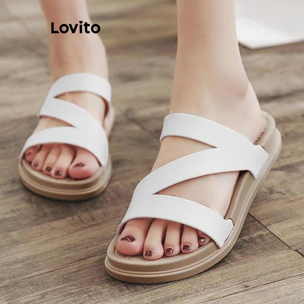 Lovito Casual Plain Tie Straw Flat Sandals for Women LFA31014
