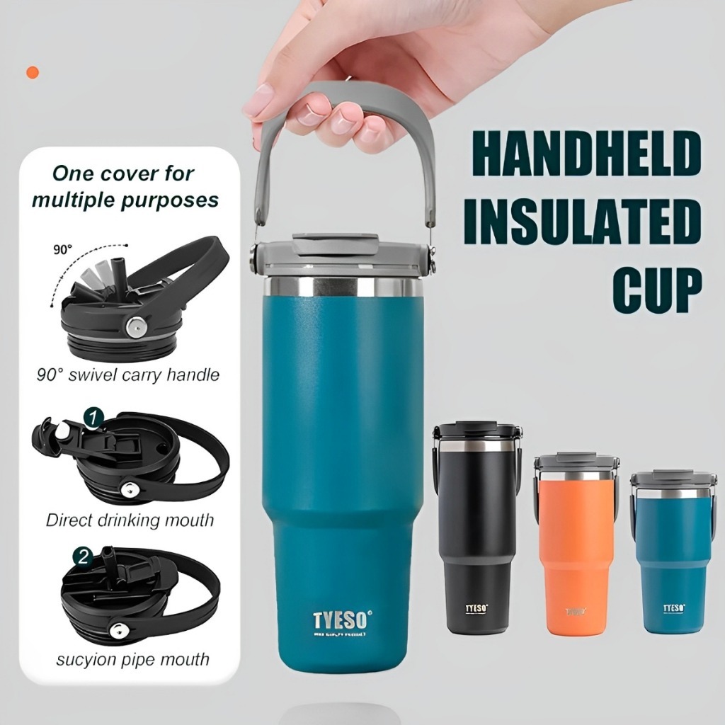 Original Tyeso Tumbler With Handle 600/750/900/1200ml Stainless Steel Double Layer Insulated Thermos Flask Water Bottle