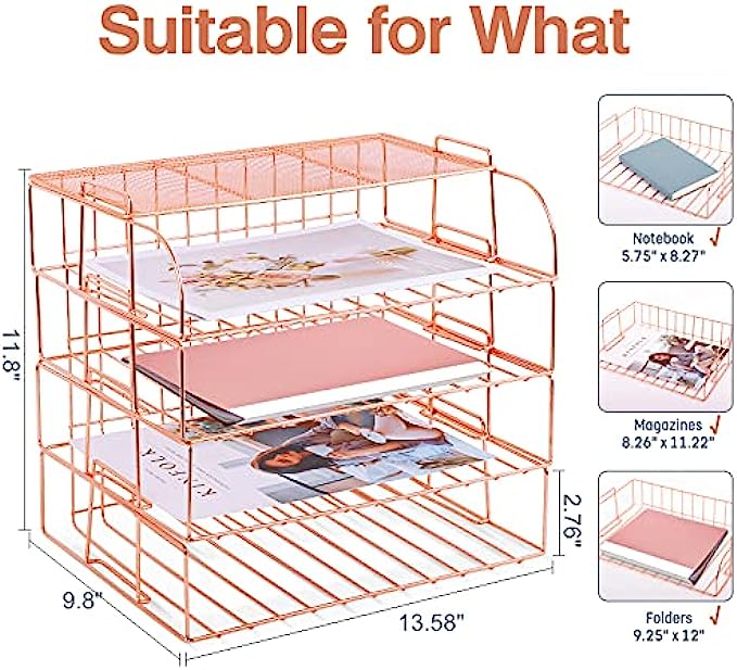 ▶Stackable File Tray- Stackable design allows you to stack them together or put them to different places separately. 4 tier trays satisfy your need of sorting files, no worry about cluttered desktop anymore.