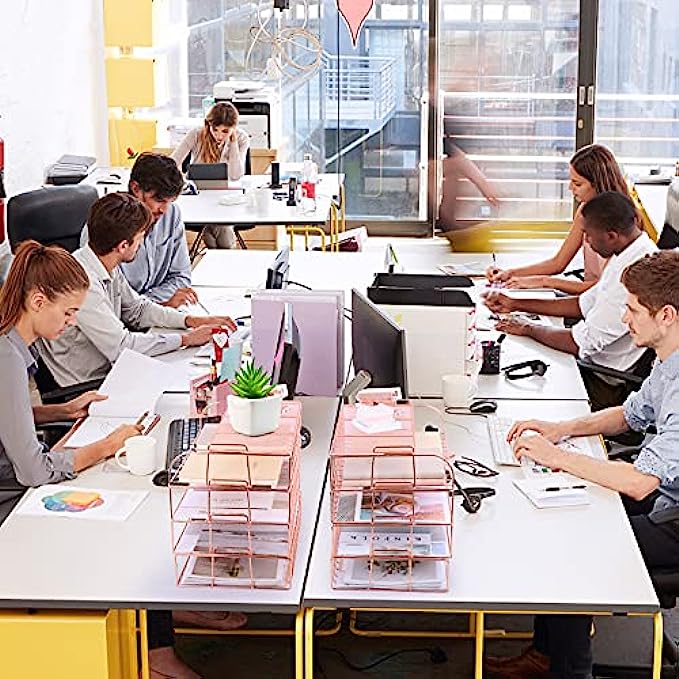 ▶Multifunctional Office Tray- This rose gold desk organizer includes four file trays and one upper display shelf plus a box of binder clips. Large enough to handle daily-used files, papers, letters, files, folders, mail and much more.