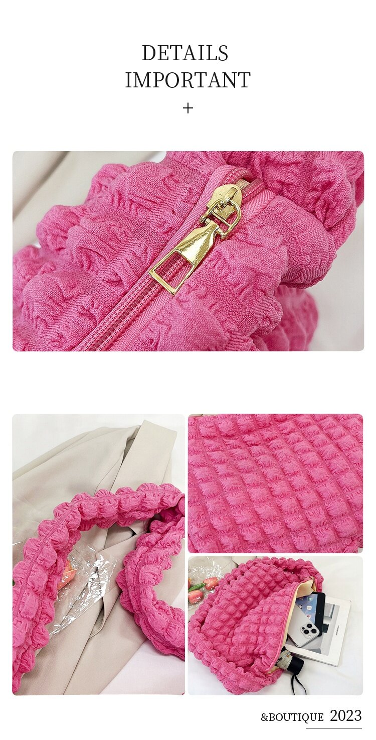 Pleated Cloud Underarm Bag 2023 New Style Solid Color Shoulder Bag Commuter Pleated Bag Shopping Bag Korean Girl Heart