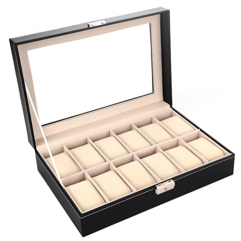 [SG Seller ] 12 Slots Watch Box Storage Case PVC Glass Top Jewelry Watch Collection Watch Case Watch Box