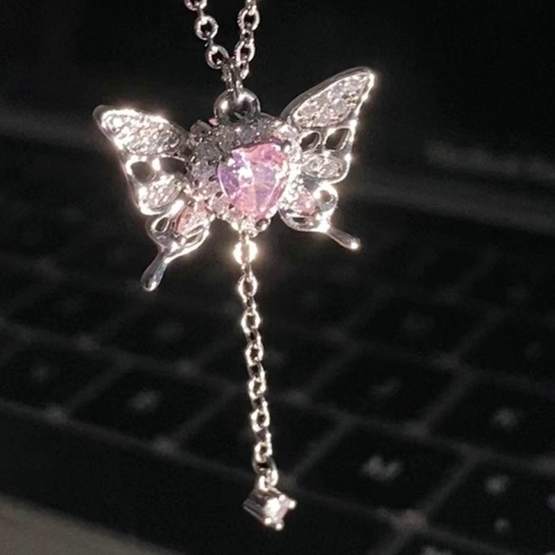Sweetheart Pendant Necklace With Pink Diamond Butterfly Bow Necklace Chic And Unique Pendant Necklace