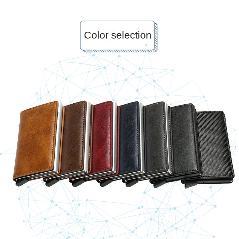 Wallet For Men PU Leather Rfid Mini Slim Card Holder Auto POP Up Aluminum Box