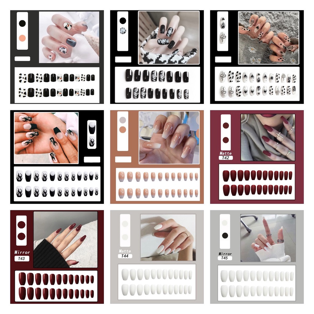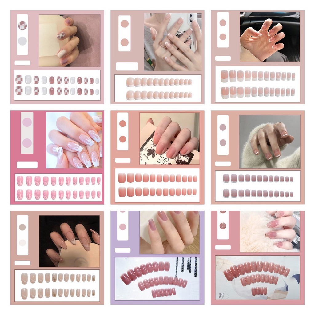 with 24 Pcs Sticker Glue 24Pcs Press On Nails Nail Art Patch Fake Nails Flase Nails Waterproof Detachable Nail Patch